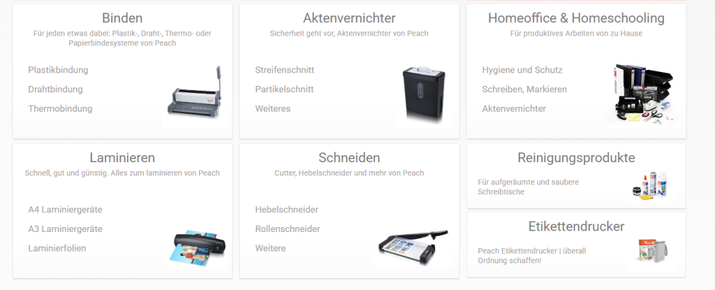 - Büro- und Homeoffice-Zubehör wie Laminiergeräte, Aktenvernichter, Etikettendrucker und Reinigungsprodukte. :contentReference[oaicite:5]{index=5}