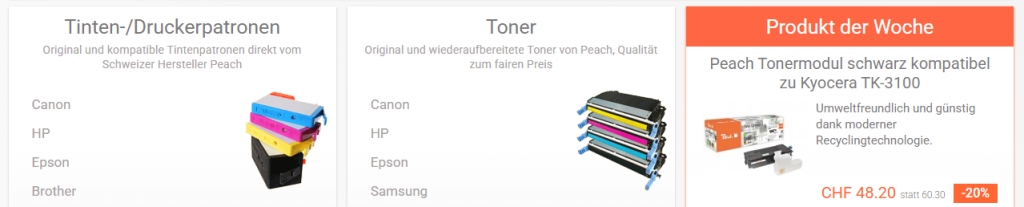 Viele der Angebote sind kompatible bzw. wiederaufbereitete Patronen – also keine teuren Originalherstellerartikel, sondern qualitativ geprüfte Alternativen. Zum Beispiel wird erläutert: „Original und wiederaufbereitete Toner von Peach, Qualität zum fairen Preis“. :contentReference[oaicite:7]{index=7}