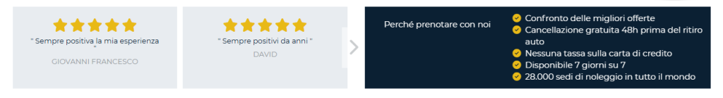 Grazie alle partnership con marchi come Hertz, Europcar, Avis e Locauto, puoi confrontare facilmente le migliori offerte e trovare il veicolo ideale per il tuo viaggio.