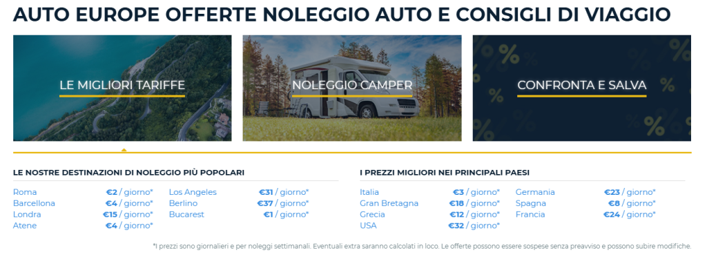 Hai in programma un viaggio in Italia o un weekend fuori porta? Trovare il noleggio auto giusto può trasformare la tua esperienza in qualcosa di davvero piacevole. Con Auto Europe puoi contare su prezzi competitivi, un’ampia gamma di veicoli e la sicurezza di un servizio affidabile, perfetto per muoverti in libertà in tutto il Paese.