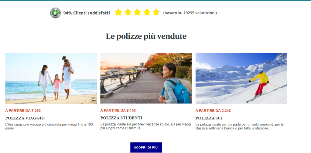 In pochi secondi, vedrai comparire le opzioni più adatte, con prezzi chiari e dettagli sulle coperture. Puoi anche confrontare le diverse formule e leggere tutte le condizioni, in modo da scegliere quella che risponde meglio alle tue esigenze.