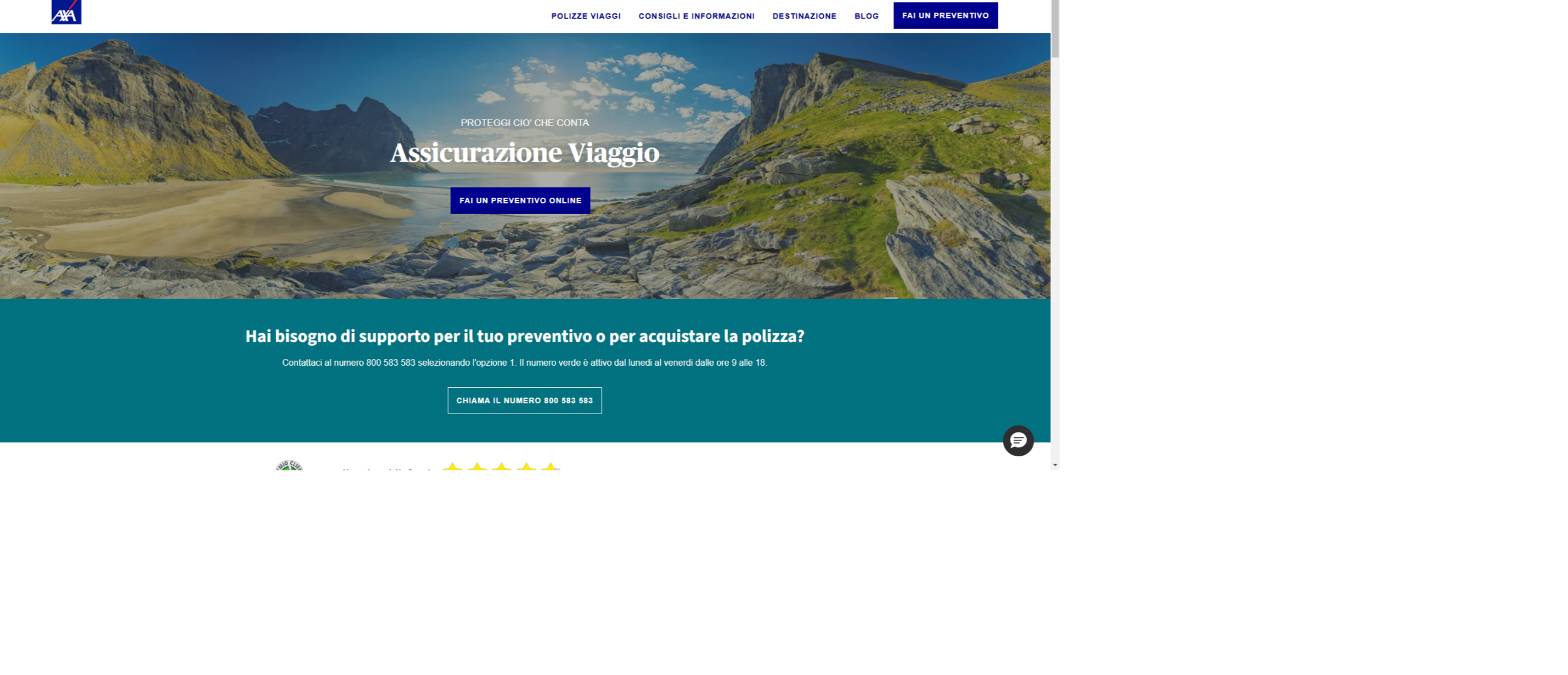 Il gruppo AXA è sinonimo di solidità e affidabilità. Da decenni fornisce coperture assicurative in tutto il mondo e oggi, con AXA Assicurazione Viaggio, mette a disposizione dei viaggiatori un servizio personalizzato e moderno.