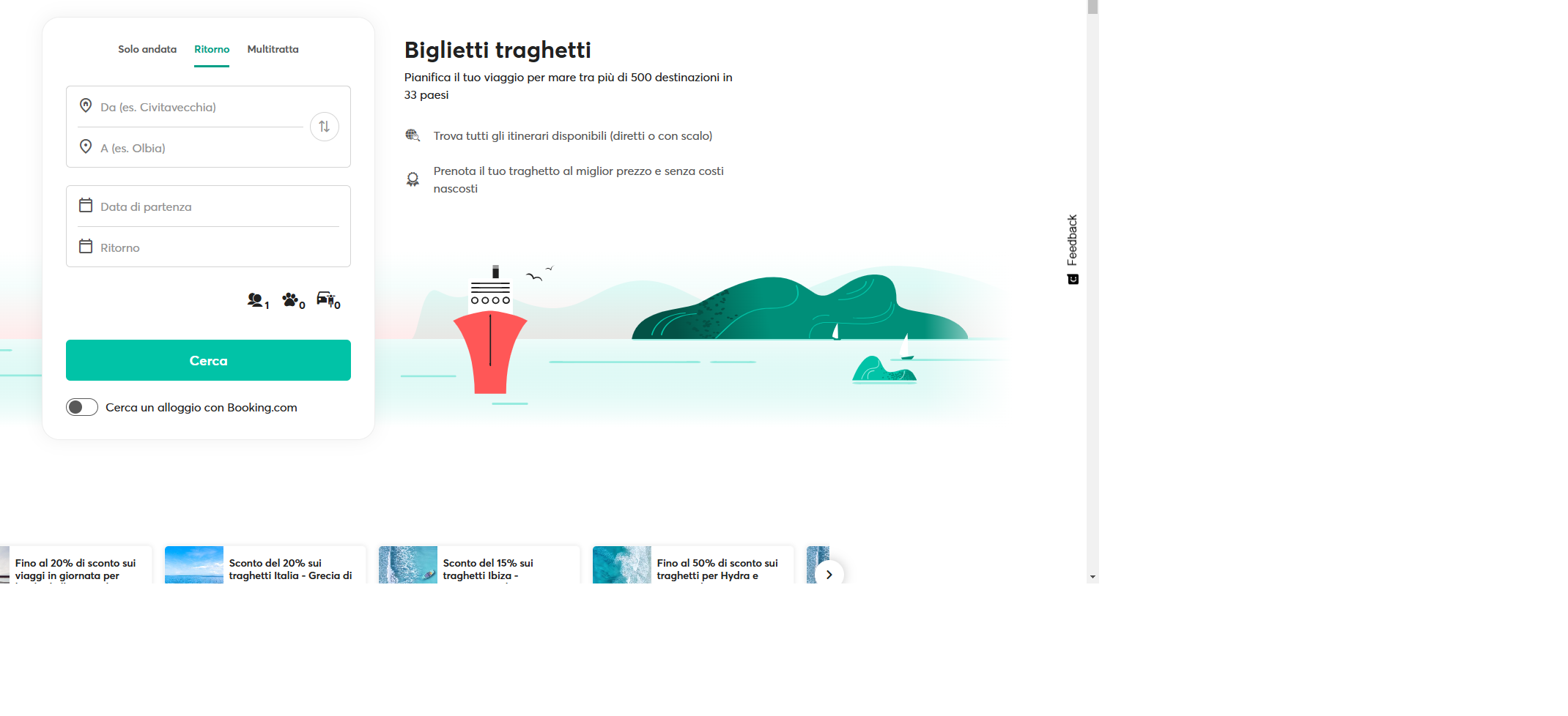 - Ampia scelta di compagnie – La piattaforma include operatori come Moby, Grimaldi, Tirrenia, Siremar, GNV e molte altre.