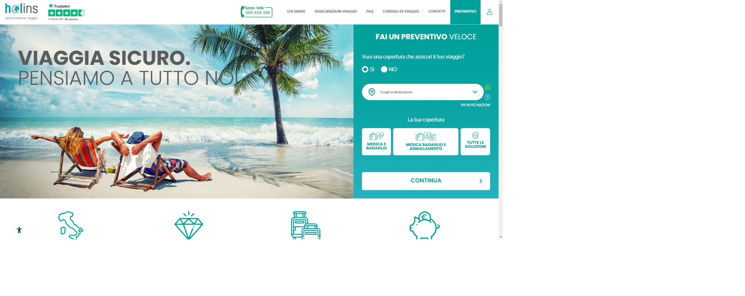 Sottoscrivere un’assicurazione viaggio con Holins è rapido e intuitivo. Il processo richiede solo pochi passaggi: