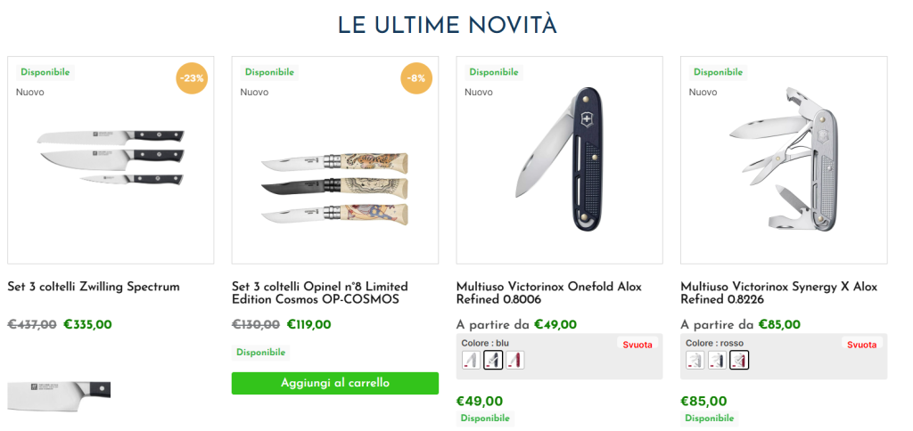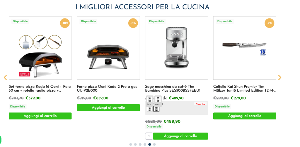 Su Kitchenoo trovi una gamma vastissima di prodotti: coltelli da chef, taglieri in legno massello, forni pizza domestici, set di pentole in acciaio inox, utensili da pasticceria e piccoli elettrodomestici di marca.