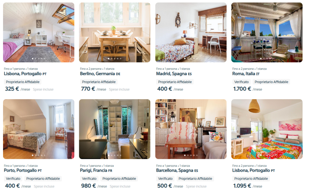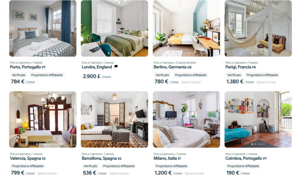 • Ricerca online tra migliaia di soluzioni in Europa suddivise per città, quartiere e budget.