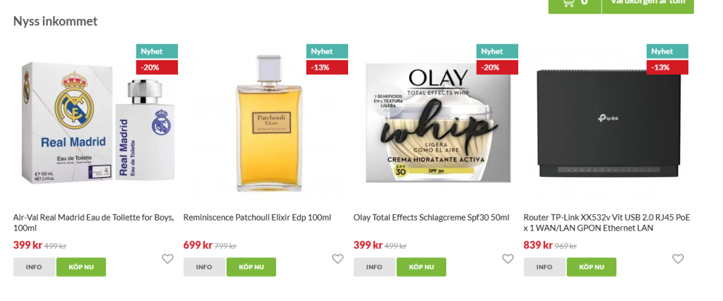 - Snabb leverans och smidiga villkor – Med orderhantering på 24–48 timmar och fri hemleverans vid flera produkter blir det enkelt och bekvämt att handla.